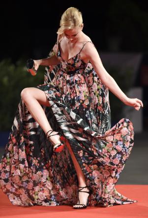 VENEZIA – L’attrice e giurata del Festival di Venezia Elizabeth Banks, prima della proiezione di “Beasts of No Nation” ha un piccolo incidente: le si impiglia il vestito sotto al tacco e lei rischia di cadere sul red carpet.