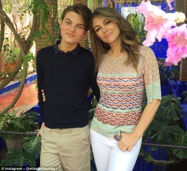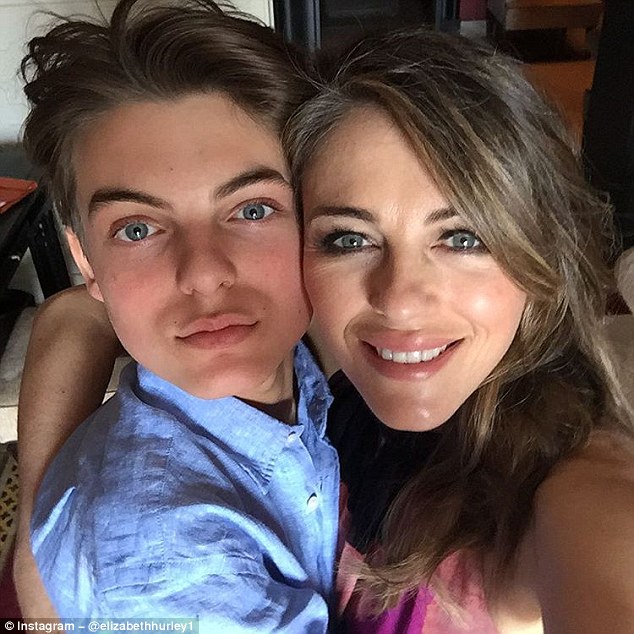 Lei, in una foto indossa un top rosa ed appare sorridente. Elizabeth è una mamma orgogliosa e viene fotografata con un braccio intorno al figlio adolescente che ha chiaramente ereditato gli occhi blu dalla mamma. Il padre di Damian è l’uomo d’affari americano e produttore cinematografico Steve Bing, con la quale Elizabeth ebbe una breve relazione con nel 2001.