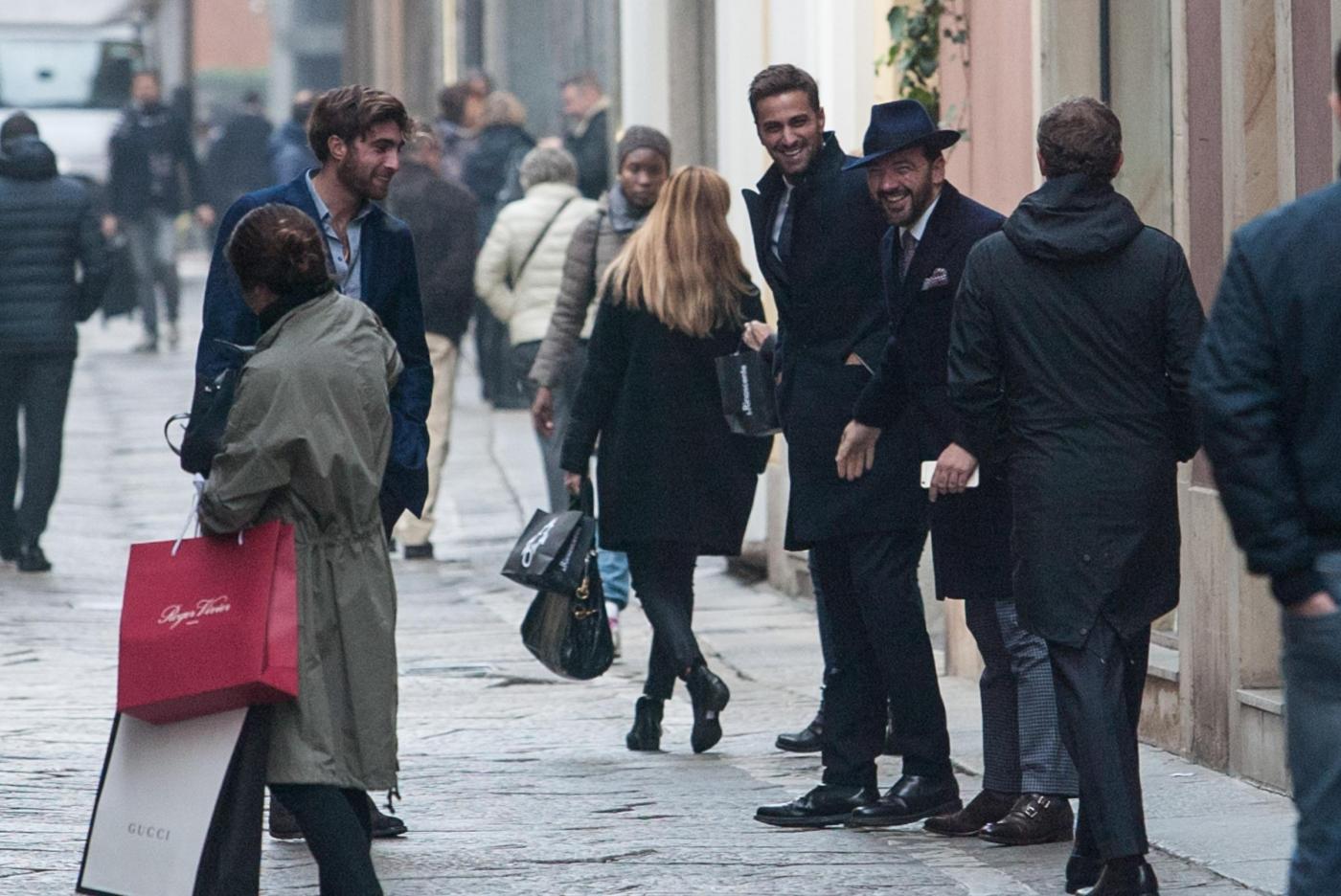 MILANO – Shopping e chiacchiere tra amici per Fabio Borriello e Alessandro Martorana. L’ex di Emma Marrone parla fitto fitto con il fashion designer più in voga del momento e si fa dare consigli sul look giusto durante una sessione di shopping in via Montenapoleone a Milano. Borriello, elegantissimo anche solo per una passeggiata in centro, ha sempre avuto una forte passione per la moda e per gli accessori come sciarpe, cappelli e cravatte che usa per personalizzare il suo stile. D’altronde chi meglio del sarto torinese può comprendere e corrispondere questo amore per le cose belle?