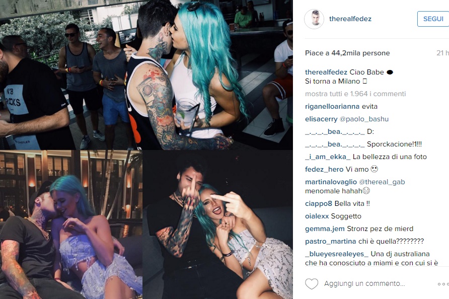MIAMI – Fedez: dj TigerLily nuova fiamma? Le FOTO insieme. Il rapper Fedez ha un nuovo amore? Brutte notizie per i fan della coppia Fedez-Giulia Valentina: sembra proprio che Fedez abbia definitivamente archiviato la relazione durata 3 anni con Giulia. Il gossip lanciato dal settimanale Chi qualche giorno fa non è stato mai confermato dai diretti interessanti ma ciò che sta accadendo nelle ultime ore sembra rafforzare l’ipotesi della rottura. Fedez, infatti, da qualche giorno si trova a Miami dove secondo i rumors avrebbe corteggiato spudoratamente (anche via social) la dj australiana TigerLily, nome d’arte di Dara Kristen Hayes. Dopo numerosi tentativi, secondo le foto apparse sul profilo Instagram del rapper sembra proprio che sia riuscito a strappare alla dj dai capelli azzurri più di un appuntamento e che i due se la stiano spassando -e non poco- in quel di Miami. Si legge su Vanity Fair: