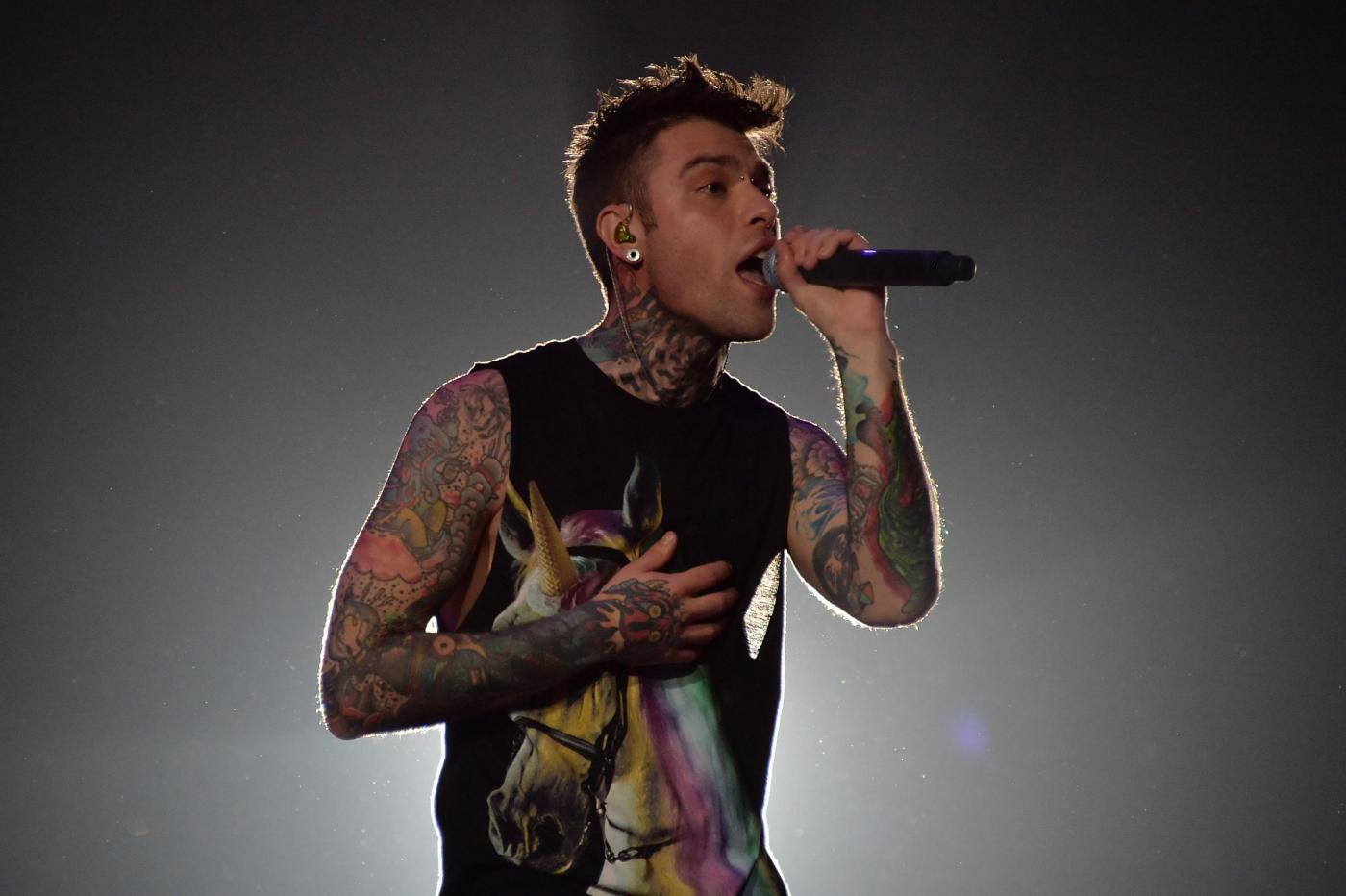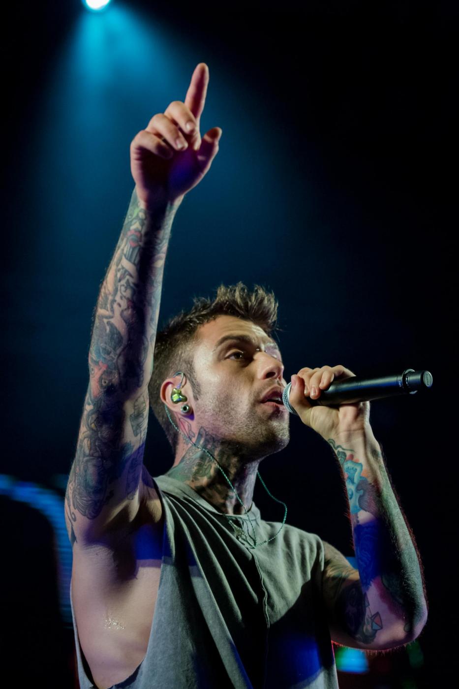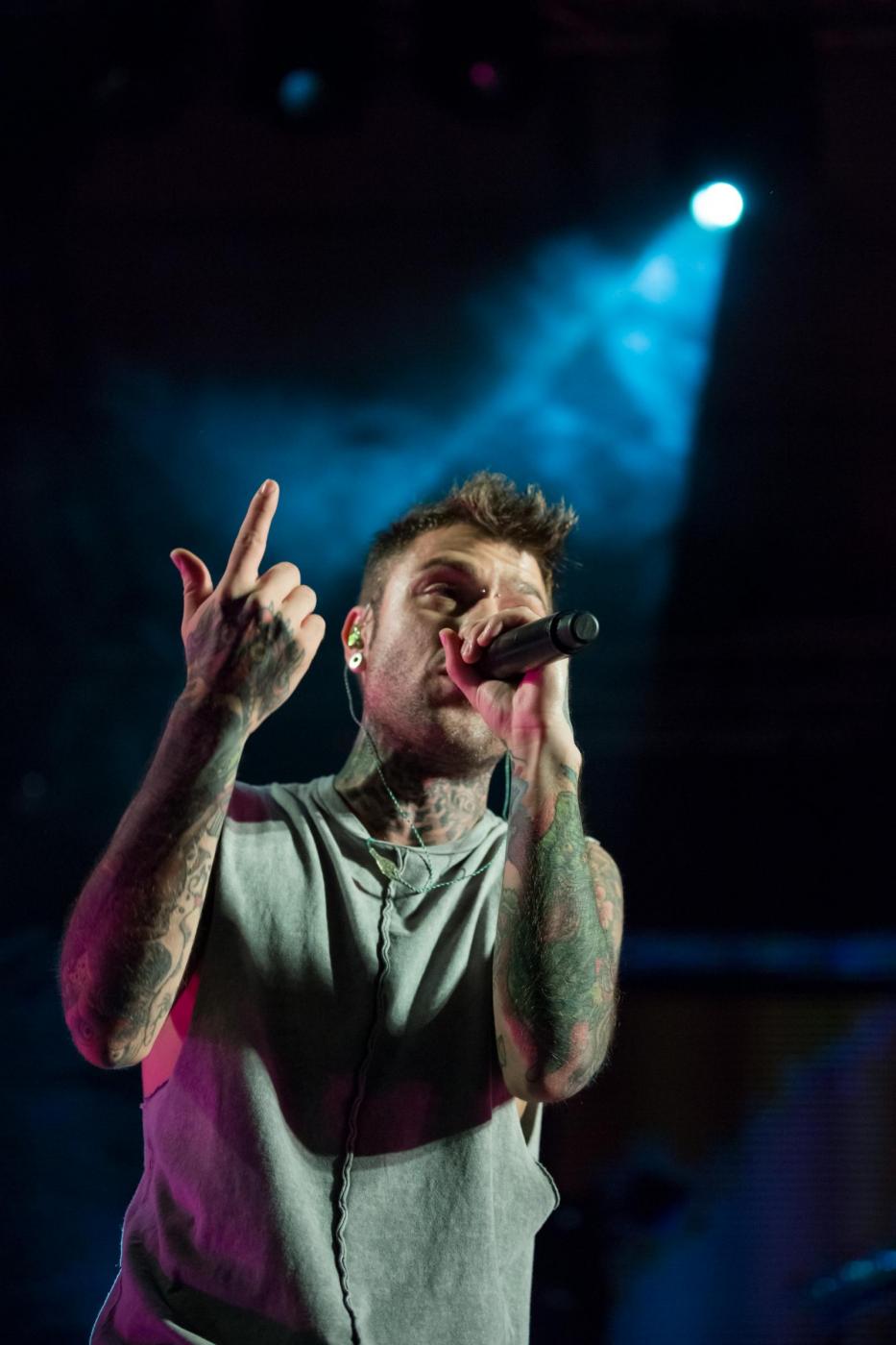 Fedez, one of the strongest names in the Italian rap, on stage. Federico Leonardo Lucia, known by his stage name Fedez, is an Italian rapper and singer. (Photo by Elena Aquila / Pacific Press) Lapresse Only italyGrugliasco: il Rapper Fedez in concerto