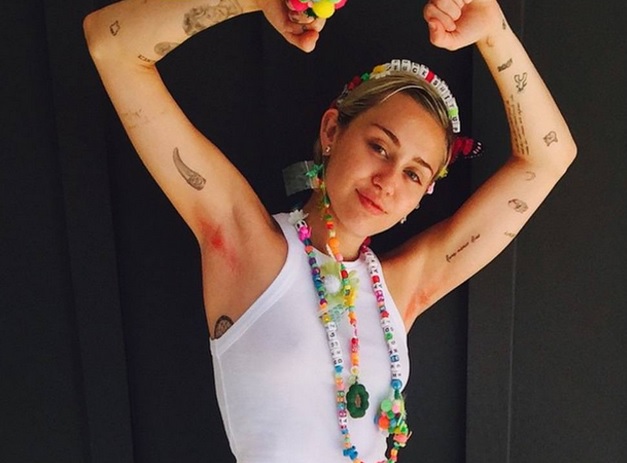 Miley Cyrus con l'ascella non rasata tinta di rosa2