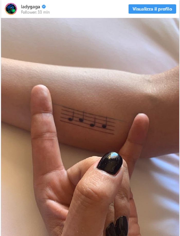 Il secondo nuovo tatuaggio è più piccolo e sono le note musicali che compongono il suo nome Gaga. Nella prima versione, le note erano disegnate su un pentagramma con 4 linee invece che 5. Alcuni fan le hanno subito fatto notare quanto accaduto e lei, dopo essersi fatta una grossa risata, ha subito aggiunto una linea.