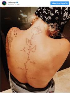 La cantante newyorkese si è tatuata una rosa sulla schiena su cui, seguendo la sua spina dorsale, c’è scritto “la vie en rose“. “La mia schiena dorsale ora è una rosa” ha scritto l’attrice di “A Star Is Born” sui social dopo aver pubblicato le immagini del nuovo tatoo.