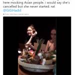 this is y’all woke palestine queen? Gigi out here mocking Asian people. i would say she’s cancelled but she never started. rat @GiGiHadid pic.twitter.com/b6wj5k1sXE