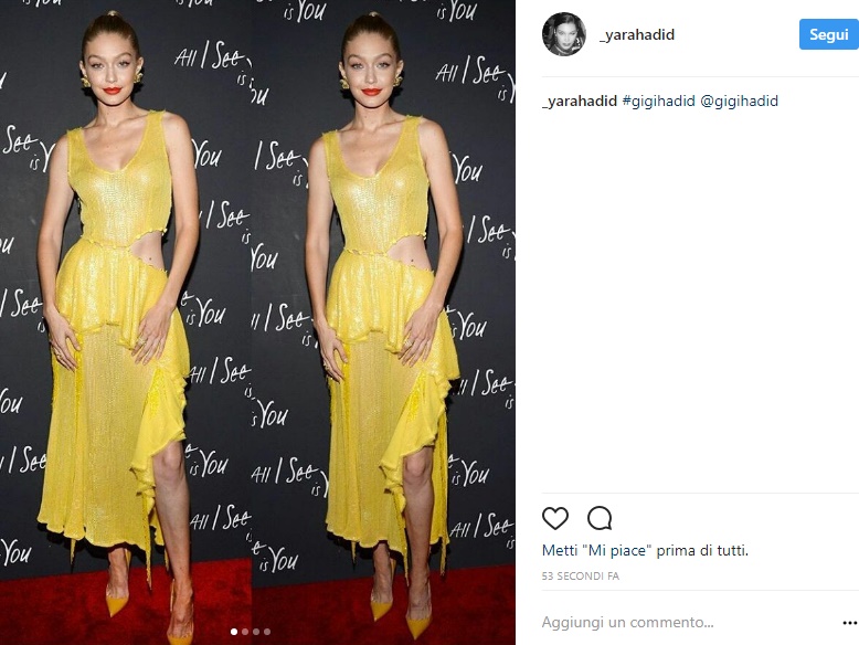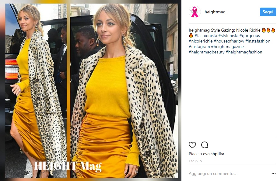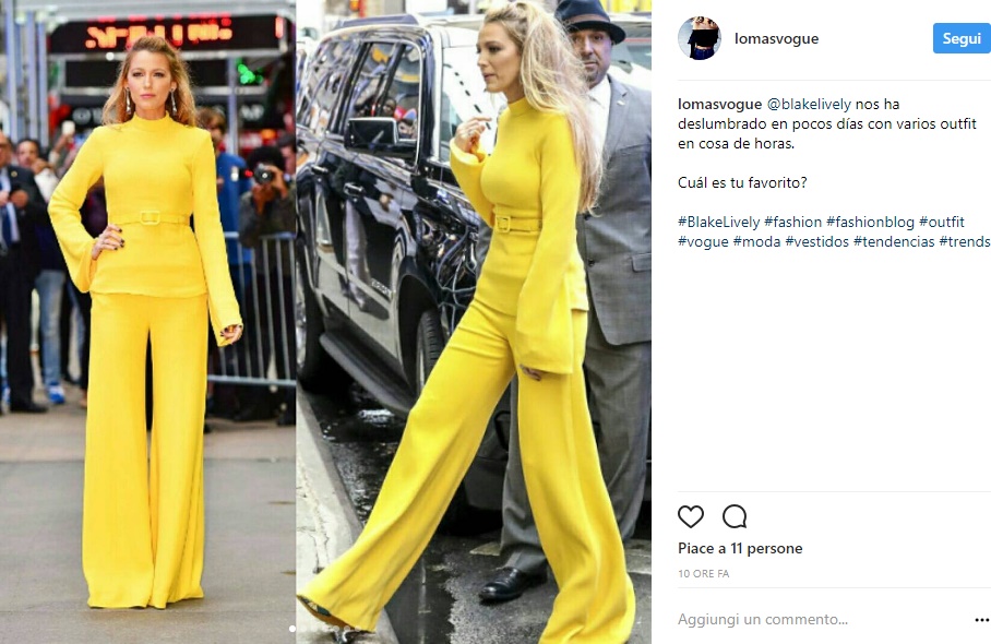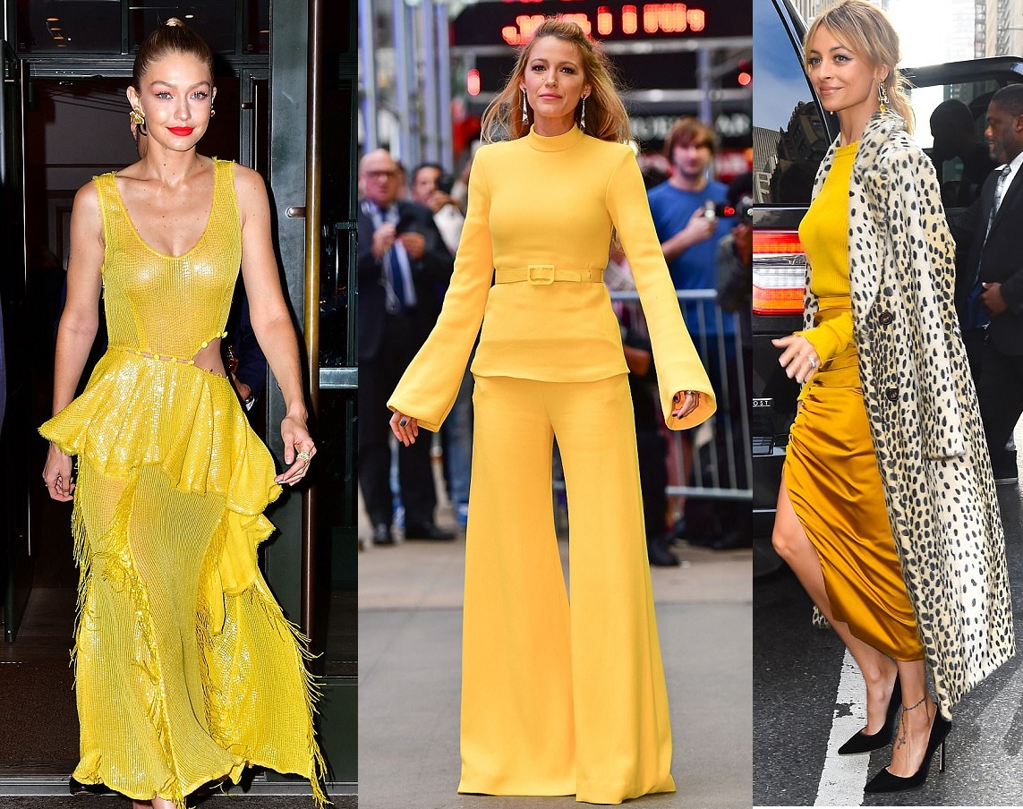 Paparazzata all’uscita del Whitby Hotel a New York, Gigi Hadid era una visione con un abito giallo canarino cut-out firmato Prabal Gurung. Scarpe con tacco Loboutin e capelli raccolti, Gigi era davvero bellissima. Nelle stesse ore, l’attrice Blake Lively ha sfoggiato un altro completo giallo. In occasione della sua partecipazione al “Good Morning America”, la moglie di Ryan Reynolds ha indossato top e pantaloni a palazzo giallo brillante firmati Brandon Maxwell. Che dire, Blake era davvero bellissima e il giallo le donava moltissimo. Qualche giorno fa anche Nicole Richie, figlia di Lionel Richie nonché attrice e trendsetter e stilista affermata, ha sfoggiato un completo giallo. Si trattava di un maglioncino For Love and Lemons e gonna aderente lunga fin sopra le caviglie di Lavish Alice. Scarpe con tacco nere e maxi cappotto maculato, Nicole è apparsa super glamour.