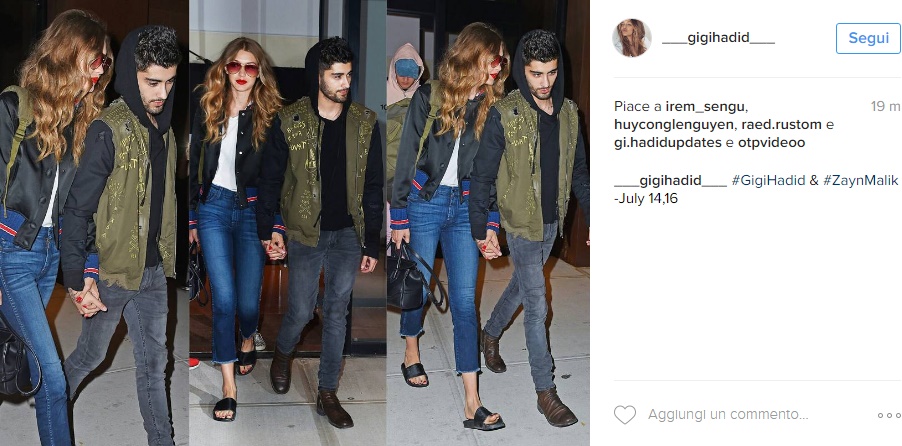 NEW YORK – Gigi Hadid e Zayn Malik affiatatissimi: mano nella mano FOTO. Altro che crisi: tra Gigi Hadid e Zayn Malik le cose sembrano andare a gonfie vele. Non passa giorno che non vengano pizzicati mano nella mano e difficilmente l’ex cantante degli One Direction riesce a staccare gli occhi di dosso dalla sua modella. Solo qualche giorno fa la coppia era stata paparazzata per le strade di New York: look coordinato e mano nella mano, i due hanno mandato in visibilio i fan. Ancora, ieri 14 luglio gigi e Zayn sono stati pizzicati avvinghiati mentre lasciavano la casa di lui a New York: jeans e bomber per entrambi, la coppia era incredibilmente glamour. Se non bastasse, anche nelle scorse ore sono stati pizzicati in giro per New York mano nella mano. Insomma, altro che rottura: Gigi e Zayn sembrano più uniti che mai, a dispetto dei rumors di qualche giorno fa secondo cui la coppia si era detta addio.