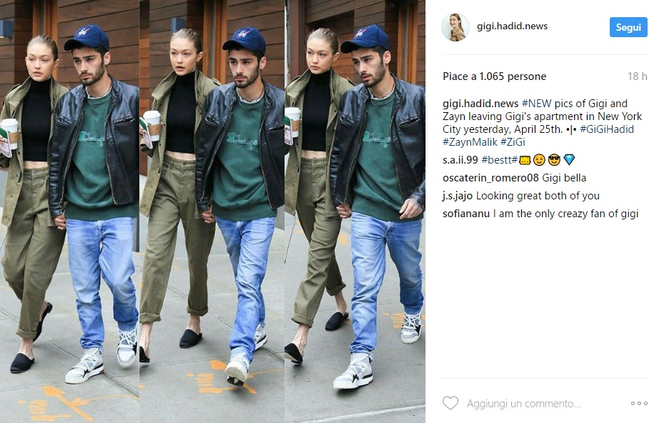 Ora, però, arriva la conferma che i due non stanno passando alcuna crisi. La coppia è stata infatti paparazzata mano nella mano all’uscita dell’appartamento della modella, a New York. !ueste foto dimostrano che Zayn e Gigi stanno ancora insieme e questo tranquillizza, almeno in parte, i fan della coppia. Solo in parte però perché, ad osservare bene le foto, gli Zigi si sono accorti che in realtà i volti dei due non sembrano sereni ma appaiono un po’ cupi. Che ci sia qualche nube all’orizzonte? I fan della coppia tremano. Gigi e Zayn stanno ormai insieme da parecchi mesi. Durante i primi tempi però venivano paparazzati molto più spesso insieme e nessuno dei due faceva un passo senza l’altro. Ora sembra che le cose si siano un po’ allentante. Hanno solo deciso di vivere la propria storia in modo più discreto oppure c’è aria di crisi? Solo il tempo ci darà le risposte.