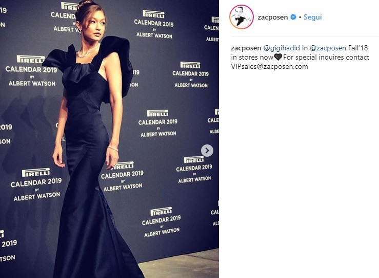 MILANO – Gigi Hadid incanta Milano: abito nero firmato Zac Posen per la supermodella americana, che ha preso parte alla presentazione del nuovo calendario Pirelli, giunto alla sua 46esima edizione.