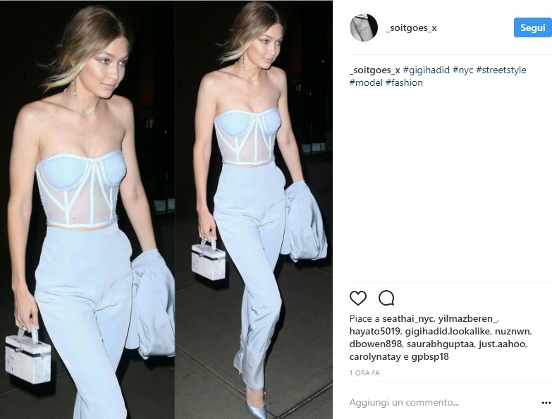 NEW YORK – Gigi Hadid, pantaloni e top trasparente: sempre più magra FOTO. Pantaloni a vita alta azzurri, top trasparente e scarpe con tacco ton sur ton: paparazzata all’uscita della sua abitazione a Manhattan, New York, Gigi Hadid ha catalizzato l’attenzione dei fotografi apparendo super glamour. La modella ha festeggiato, insieme alla famiglia, il compleanno della sorella Bella che il 9 ottobre ha compiuto 21 anni. Gigi era davvero bellissima ma un particolare non è passato inosservato agli occhi attenti dei fan: la modella è apparsa davvero molto magra. Un dettaglio che ha immediatamente allarmato gli ammiratori di Gigi, che si sono precipitati in massa sui Social a chiedersi il motivo di questo repentino cambiamento di peso.