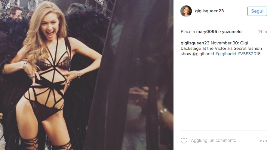 LOS ANGELES – Gigi Hadid sempre più magra: il segreto della sua dieta. 4 litri di acqua al giorno e gelato al gusto di guànabama: sarebbe questo il segreto di bellezza degli Angeli di Victoria’s Secret che il 30 novembre scorso hanno sfilato sulla passerella del Grand Palais di Parigi sfoggiando i loro fisici tonici e completini intimi a dir poco sensuali. Ormai manca davvero poco alla messa in onda del super show, attesissimo da milioni di ragazze in tutto il mondo, che verrà trasmesso il 5 dicembre prossimo in esclusiva sul canale televisivo americano CBS.
