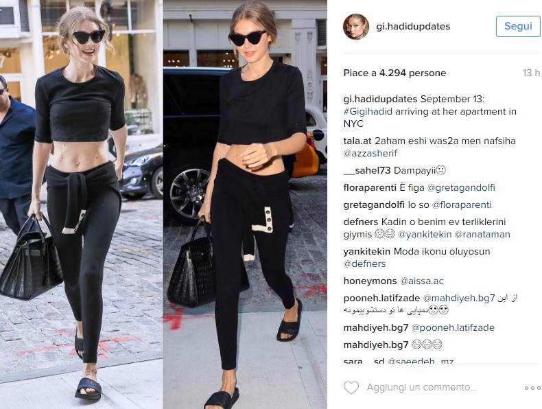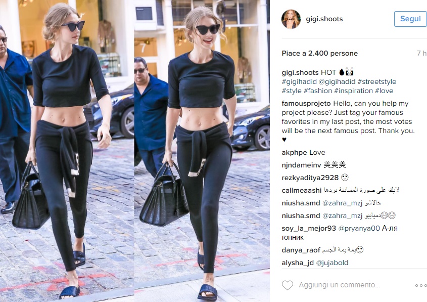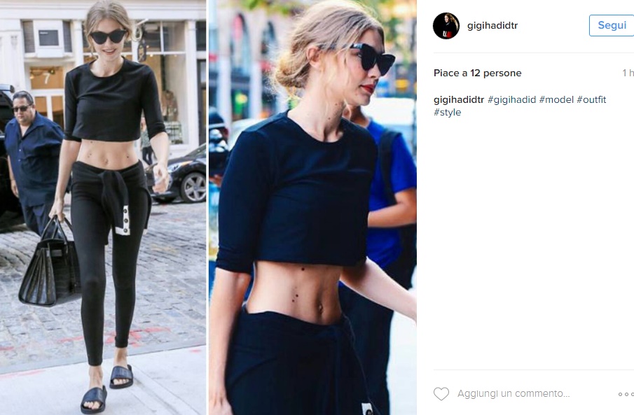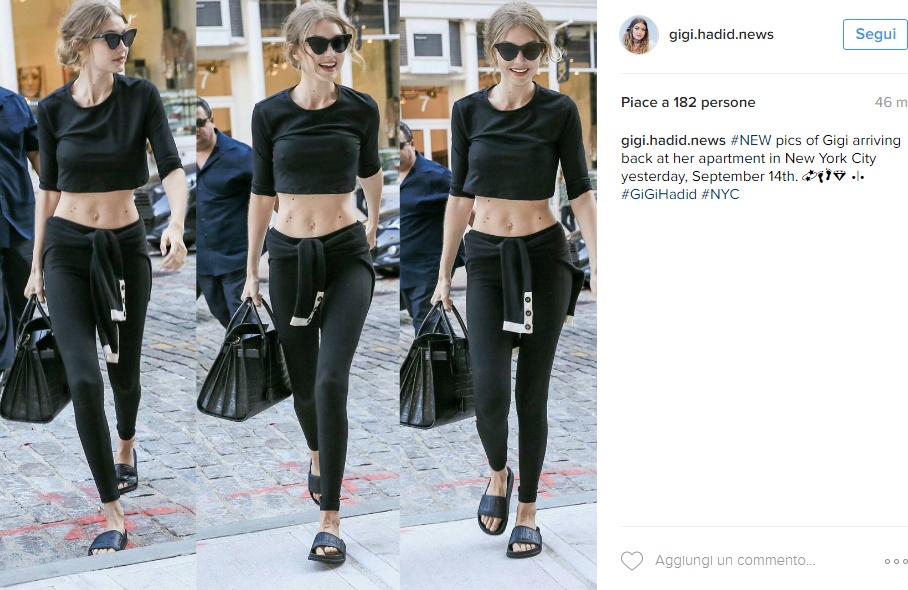 NEW YORK – Gigi Hadid sempre più magra: top corto e ventre scavato FOTO. Bellissima ma… sempre più magra. Non passa giorno ormai che la forma fisica di Gigi Hadid, sempre più esile, sia al centro di gossip. Sono lontani i giorni in cui sfoggiava un fisico tutte curve e, addirittura, sui social veniva additata come “troppo grassa per sfilare”. Ultimamente la modella si sta mostrando sempre più magra tanto che molte volte i fan si sono allarmati per il peso che sta perdendo a vista d’occhio. Così, a spasso per New York, Gigi è stata pizzicata con un look glamour total black formato da legging strettissimi, top corto e ciabatte ai piedi. A saltare subito all’occhio, però, non è stata tanto la sua mise fashion quanto il suo fisico incredibilmente magro. E dire che non è passato nemmeno un anno da quando sulla passerella di Victoria’s Secret ha mandato in visibilio i fan con il suo fisico tonico ma non certo deperito. Ora, la modella sfoggia un ventre piatto, forse troppo, e sul web si discute se forse negli ultimi mesi Gigi non sia dimagrita un po’ troppo.