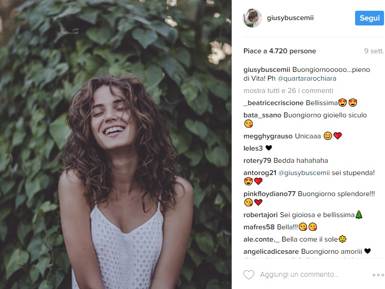 Non solo attrice di successo: Giusy è anche una donna bellissima (non a caso ha vinto Miss Italia). Alta 175 cm, Giusy ha un fisico proporzionato e gambe lunghe e slanciate. L’attrice è seguitissima sui Social e su Instagram vanta moltissimo follower. In merito alla sua vita privata però non si sa molto in quanto è da sempre molto attenta a difendere la sua privacy. Secondo una intervista a Vanity Fair datata 2015, infatti, Giusy Buscemi era felicemente fidanzata e all’epoca l’attrice aveva raccontato alla rivista di moda che il suo uomo ideale era un po’ all’antica, concreto e romantico: “Sembra strano, ma per fortuna nel 2015 l’ho scovato” aveva detto. Ora però sui suoi profili social non compaiono foto in coppia di un ragazzo e il status su Facebook è impostato su single. Tutti indizi che porterebbero a pensare che attualmente l’attrice non sia fidanzata. Di sicuro, la sua storia d’amore più importante è quella con il suo ex storico, Giuseppe Galfano, con cui è stata fidanzata al liceo. I due si erano conosciuti a scuola alle elementari per poi ritrovarsi alle superiori quando, in quarto licelo, la loro amicizia era diventata amore. L’amore tra i due sembrava andare a gonfie vele tanto che, subito dopo la vittoria a Miss Italia, Giusy aveva dichiarato di non voler affatto lasciare il suo Picci (così lo chiamava). Purtroppo le cose sono andate diversamente e, dopo pochi mesi dalla vittoria del concorso, Giusy e Giuseppe si sono lasciati.