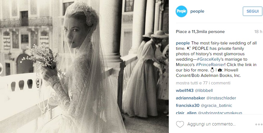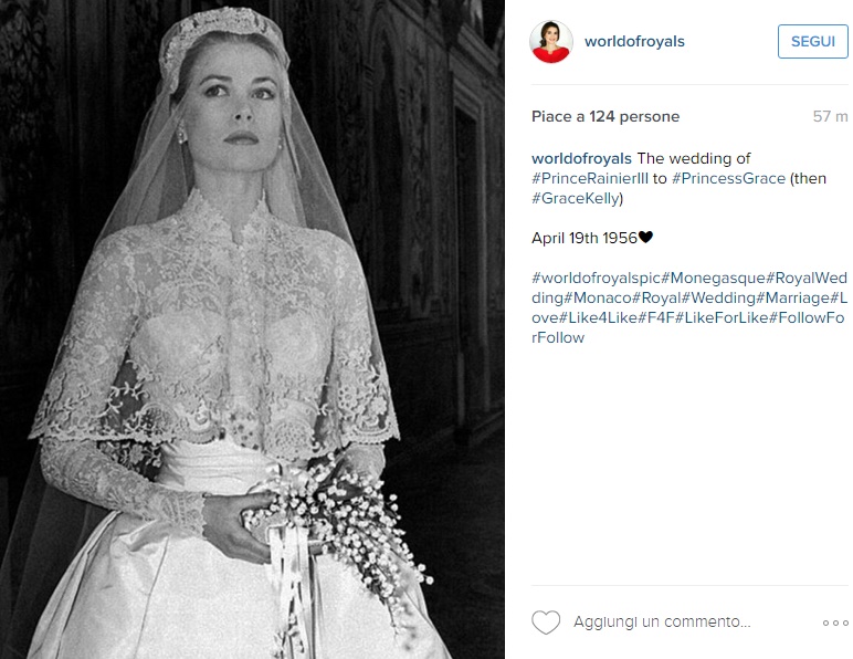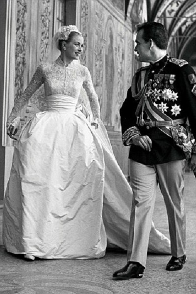 L’abito di Grace segnerà la storia e sarà poi di ispirazione alla nostra amata Kate. Tutti i maggiori stilisti si contesero di poter vestire Grace, alla fine vinse la casa di produzione cinematografica MGM Studios. Il vestito da sposa, una meravigliosa creazione della stilista Helen Rose che vestì Grace Kelly durante l’ultimo film interpretato dall’attrice, fu realizzato con l’aiuto di 35 sarte: furono utilizzati 24 metri di taffetà di seta e altrettanti di gros de longre di seta. Sulle spalle e la scollatura, un meraviglioso pizzo Valenciennes. Il velo era ornato di trine e di mille perline. Era rivestito di seta e con una croce di perle persino il libro di preghiere della principessa.
