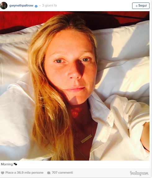 LOS ANGELES – Un nuovo “buongiorno” di Gwyneth Paltrow in cui l’attrice appare “acqua e sapone”. Lo scatto al naturale è stato postato su Instagram dall’attrice e a differenza di quello che si potrebbe pensare, pur essendo l’attrice irriconoscibile, ha ricevuto l’approvazione di molti fan.