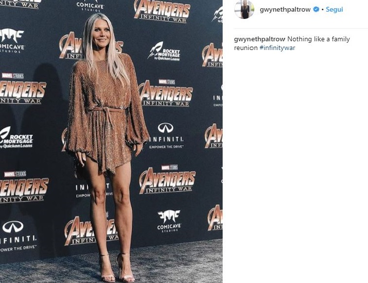 LOS ANGELES – Gwyneth Paltrow splendida in mini abito. L’attrice americana è apparsa più bella che mai sul red carpet del film “Avengers: Infinity War” con un mini dress color carne a manica lunga firmato Retrofete, abbinato a sandali con tacco Jimmy Choo. La star hollywoodiana ha poco da invidiare a una 20enne. Per lei il tempo sembra non passare mai.