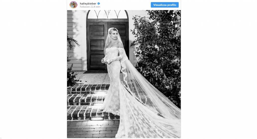 Le nozze sono avvenute lunedì 1 ottobre ed ora, una settimana dopo, sono stati diffusi alcuni particolari. Il più importante è apparso su Instagram: si tratta delle foto dell’abito scelto da Hailey, nipote da parte di madre del grande cantante di jazz e bossanova italo-brasiliano Eumir Deodato.