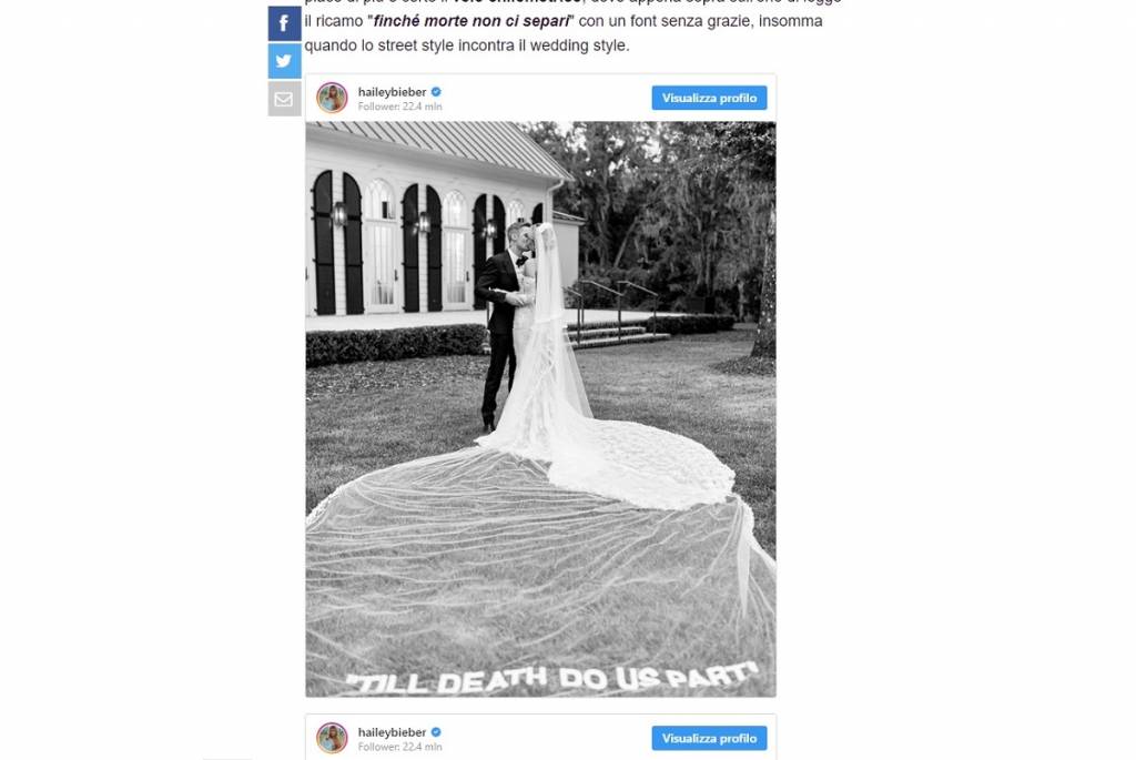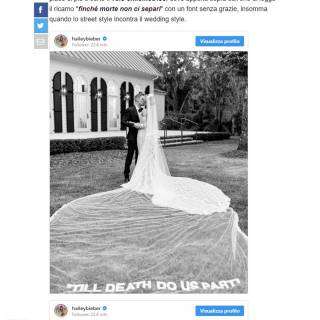 Hailey si è decisa a condividere su Instagram le foto del suo wedding look per celebrare il primo anniversario di una settimana. Il vestito da sposa è stato disegnato da Virgil Abloh di Off-White. Lo stilista è molto amico della modella: non a caso Hailey, spesso indossa proprio i suoi modelli.