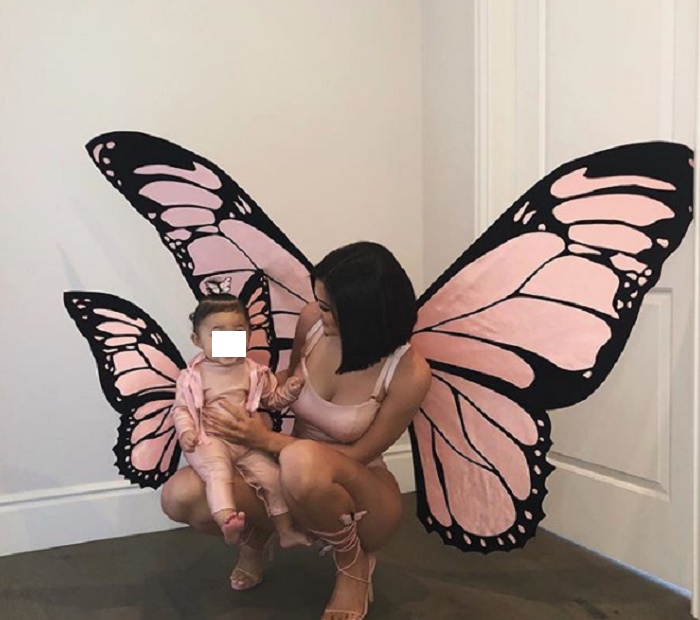 Il vestito “bollente” è apparso come sempre su Instagram. Per rendere più chiaro il tutto, Kylie ha scritto la didascalia “Butterfly Effect “, facendo riferimento a una canzone del suo fidanzato di Travis Scott che avrà sicuramente apprezzato. Ad accompagnare un piccolo video in cui la Jenner muove le ali, come didascalia è invece apparsa la parola “mariposa”, ossia farfalla in spagnolo. In un altro scatto, Kylie appare con la piccola Stormy Webster vestita nello stesso modo di mamma, anche se braccia e gambette in questo caso sono coperte da una tutina rosa. “My baby butterfly” è in questo caso la dida scelta.