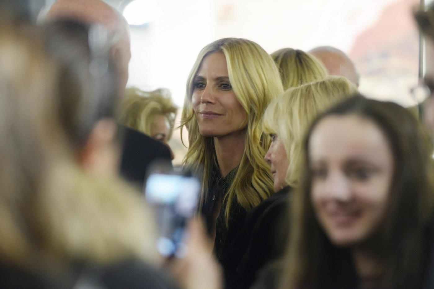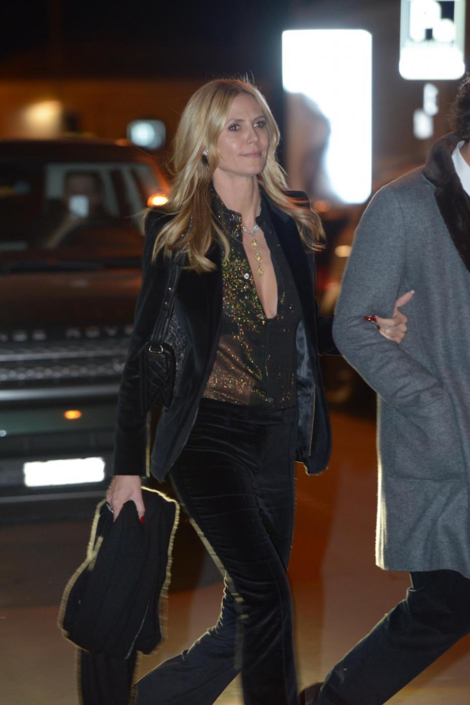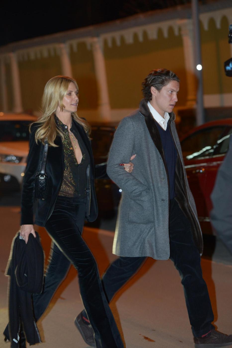 I due sono stati paparazzati insieme all’interno della galleria di lui che ha solo due sedi: una qui in Svizzera, l’altra a New York. Anche se in pieno inverno, per l’occasione la modella 42enne indossa una camicetta nera e trasparente, sbottonata sul davanti, con dei brillantini color arancio. Heidi appare sorridente e perfettamente a suo agio: alla camicia abina dei pantaloni ribassati di velluto nero.