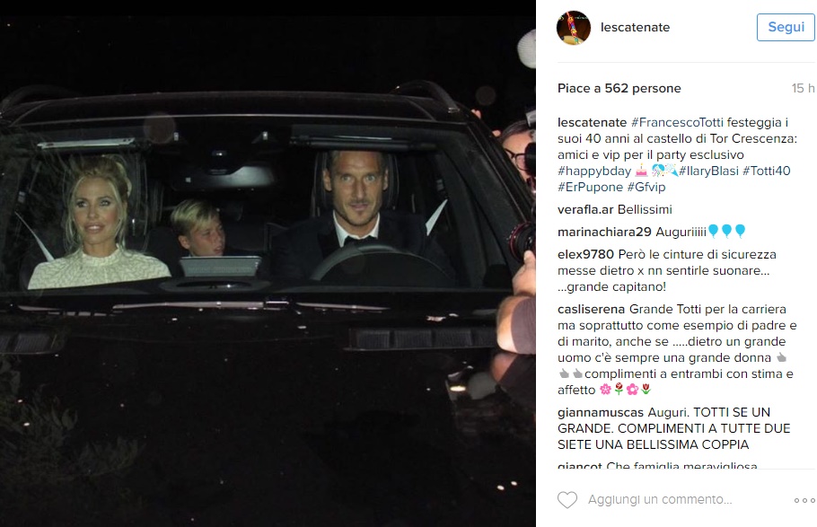 Ieri, alla festa per il 40esimo compleanno di Totti, è stato tutto perfetto: belli e innamorati, non c’è davvero nulla che non va. E però, c’è un però. Perché gli irriducibili del gossip e degli scoop non potevano non notare un particolare che, ovviamente, ha immediatamente innescato la polemica. In macchina, all’arrivo al castello di Tor Crescenza dove è stata celebrata la festa, un particolare non è passato inosservato: sia Totti che Ilary non avevano la cintura di sicurezza che era allacciata, sì, ma passava dietro la schiena invece che davanti. Probabilmente, per non far sgualcire i vestiti. I detrattori della coppia non ci hanno pensato un momento a far notare il particolare e, ovviamente, sul web si è accesa la polemica: “Sei considerato un simbolo, non diffondi un buon messaggio allacciando la cintura dietro la schiena” ha scritto uno. “In macchina con i figli, non è certo un buon insegnamento” grida un altro.