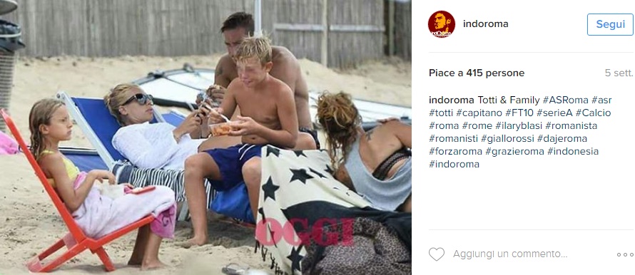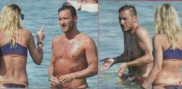 Foto Mario Cartelli/LaPresse 07/08/2014 Sabaudia ( LT ) - Italia gossip Francesco Totti appena rientrato dalla tounee americana con la squadra, dedica il suo tempo ai figli, in spiaggia si lascia andare a tenere coccole a Chanel e poi la solita partitella con a calcio con Christian per finire con un rinfrescante bagno. Spiaggia di Sabudia, Latina - Italia. Nella foto: Francesco Totti con i figli Christian e Chanel.Photo Mario Cartelli/LaPresse7 August 2014 Sabaudia, Latina - ItaliaGossipFrancesco Totti has just returned from the American tounee with the his team, spends time with familyIn the pic: Francesco Totti with his childrens Christian and Chanel