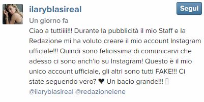 “Ciao a tuttiiii!!! Durante la pubblicità il mio Staff e la Redazione mi ha voluto creare il mio account Instagram ufficiale!!! Quindi sono felicissima di comunicarvi che adesso ci sono anch’io su Instagram! Questo è il mio unico account ufficiale, gli altri sono tutti FAKE!!! Ci state seguendo vero? ❤️ Un bacio grande!!” commenta Ilary mostrando la sua prima foto in cui appare nel dietro le quinte con Fedez.