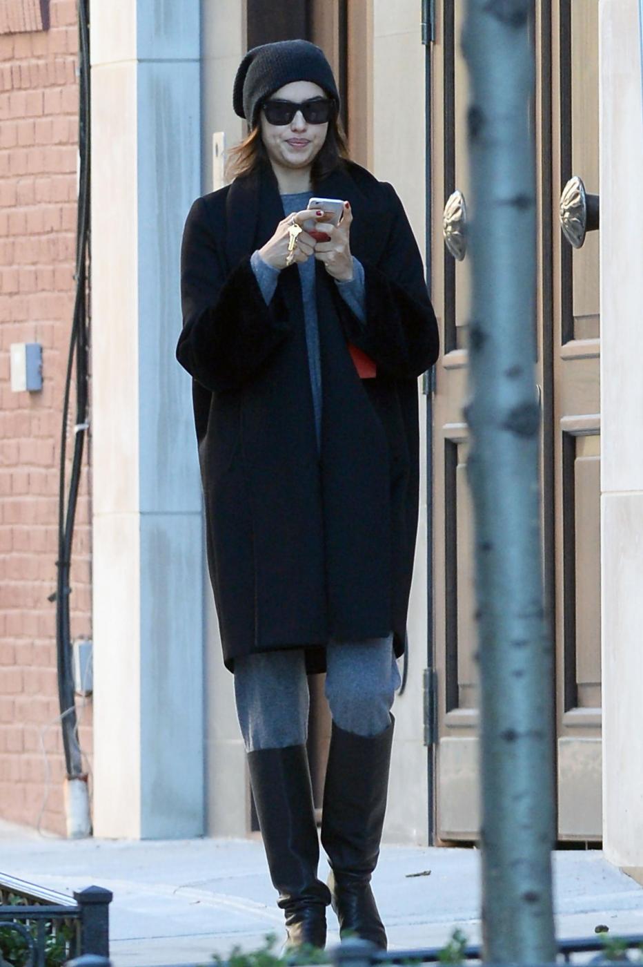NEW YORK – Irina Shayk a passeggio per New York: look bocciato. La super modella russa è stata fotografata per le vie della Grande Mela senza il suo fidanzato Bradley Cooper. A colpire però è il suo outfit trasandato e poco femminile: un cappocco nero largo, abbinato a stivali dello stesso colore e una tuta grigia sotto. Cappello nero e occhiali a completare il tutto. Calcolando che è solita farsi immortale con abiti dei migliori stilisti, primo fra tutti Versace, questa caduta di stile è poco giustificabile.