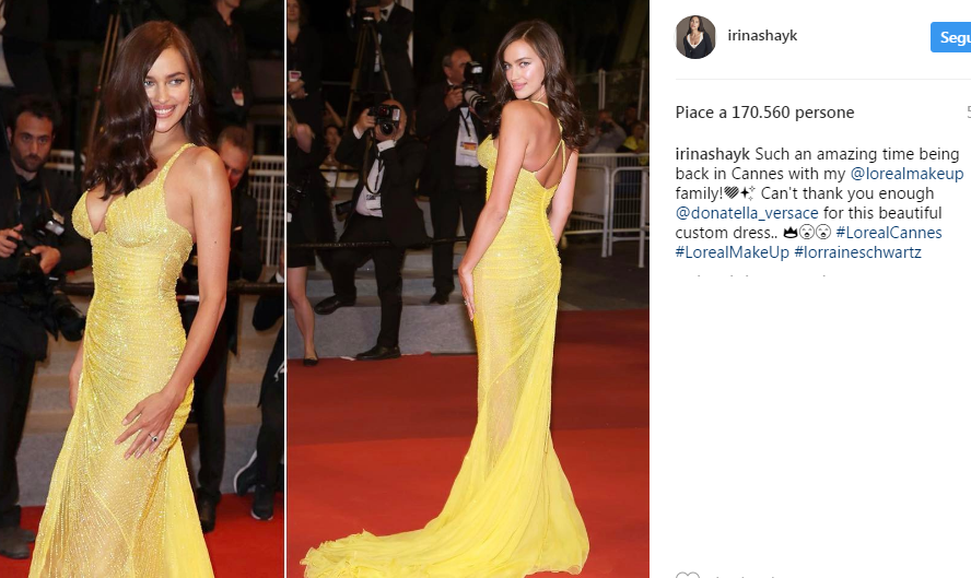 CANNES – Irina Shayk in gran forma sul red carpet del festival di Cannes. La neo mamma ha indossato un incantevole abito giallo firmato Versace, che metteva in risalto la sua statuaria bellezza. La super modella russa ha dato alla luce una bambina, Lea de Seine, nata dalla relazione col compagno Bradley Cooper. Il parto è avvenuto lo scorso 21 aprile. A poche settimane dal parto Irina si mostra in tutta la sua sensualità. Una vera visione.