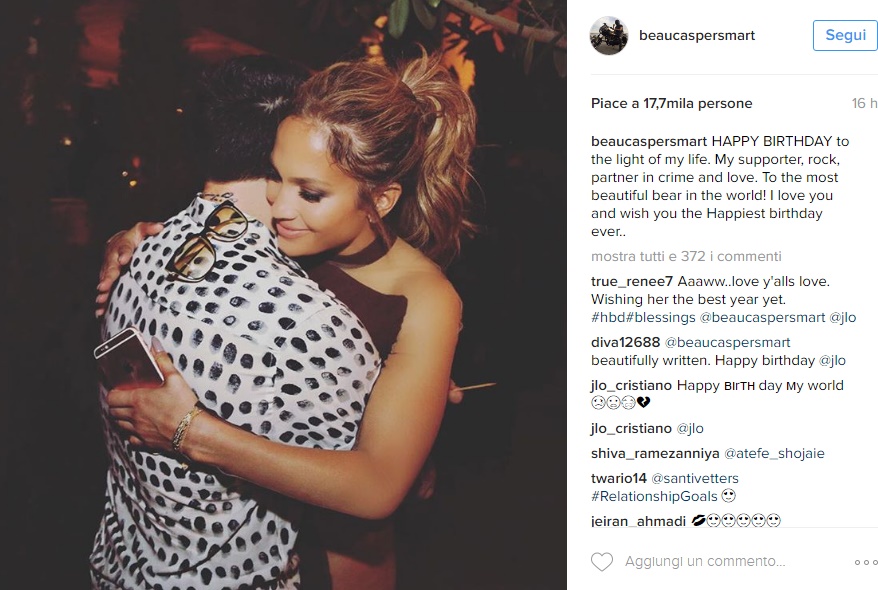 Dopo Marc Anthony Jennifer Lopez ha avuto una lunga relazione con Casper Smart, ballerino di 29 anni con cui l’attrice ha avuto diversi tira e molla. Secondo un recente gossip, però, la relazione con Casper sarebbe terminata e sembra che la cantante avrebbe iniziato a frequentarsi con il rapper Drake, ex storico di Rihanna. Negli ultimi tempi Jennifer e Drake hanno cominciato a postare sui propri profili Instagram diverse foto insieme che hanno alimentato i rumors di una relazione, nonostante nessuno dei due abbia ancora confermato.