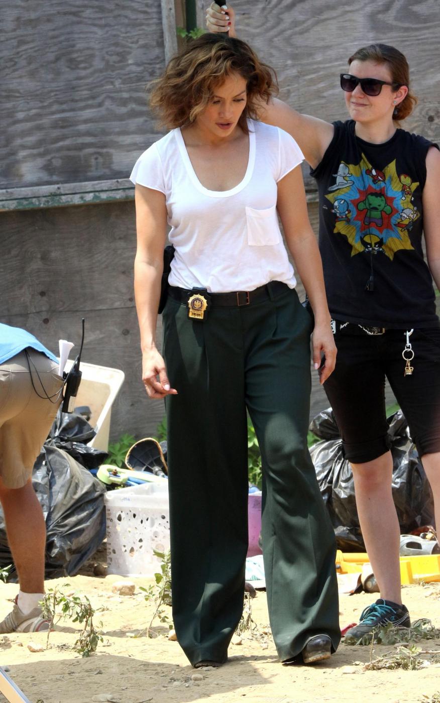 NEW YORK – Jennifer Lopez, look sconvolto per motivi di copione: caschetto riccio e forme lievitate. La cantante è stata fotografata sul set del nuovo crime drama di NBC “Shades of Blue”, “Variazioni di blu”, incentrato sulla polizia della Grande Mela. Nel cast anche Ray Liotta, Warren Kole e Vincent Laresca. JLo interpreta il ruolo di madre single, Harlee McCord, reclutata dall’FBI per lavorare sotto copertura in una task force anti-corruzione.