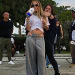 Siamo a Miami sul set di un nuovo videoclip insieme a DJ Khaled. Sullla collaborazione tra i due non si sa niente. L’unica cosa che si conosce è l’audace outfit di JLo: per l’occasione, la splendida pop star ha scelto di indossare un paio di larghi pantaloni grigi e un top bianco che lascia scoperto larga parte del pancino. Impossibile non notare il perizoma che spunta dalla vita bassissima.