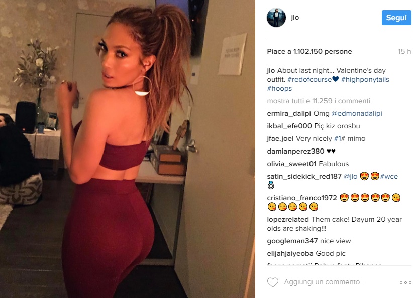 LOS ANGELES – Jennifer Lopez sensuale: look esplosivo a San Valentino FOTO. Un legging effetto seconda-pelle e top striminzito: Jennifer Lopez è apparsa super glamour in rosso con un look sportivo ma incredibilmente sensuale. 47 anni, non sentirli e soprattutto… non dimostrarli. Quando si tratta di Jennifer Lopez non ce n’è per nessuna: l’attrice e cantante ha pubblicato una foto su Instagram che ha mandato in visibilio i milioni di fan. Nello scatto Jennifer ha messo in risalto le sue curve perfette e il suo lato b incredibilmente tonico. Che dire, la Lopez riesce ad apparire meravigliosa anche con un look semplice come questo. Dopotutto non è una novità che il suo lato b prosperoso e le curve mozzafiato hanno contribuito a farla diventare una delle donne più desiderate del mondo.