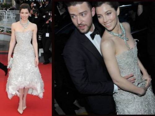 Jessica Biel insieme a Justin Timberlake durante il Festival di Cannes