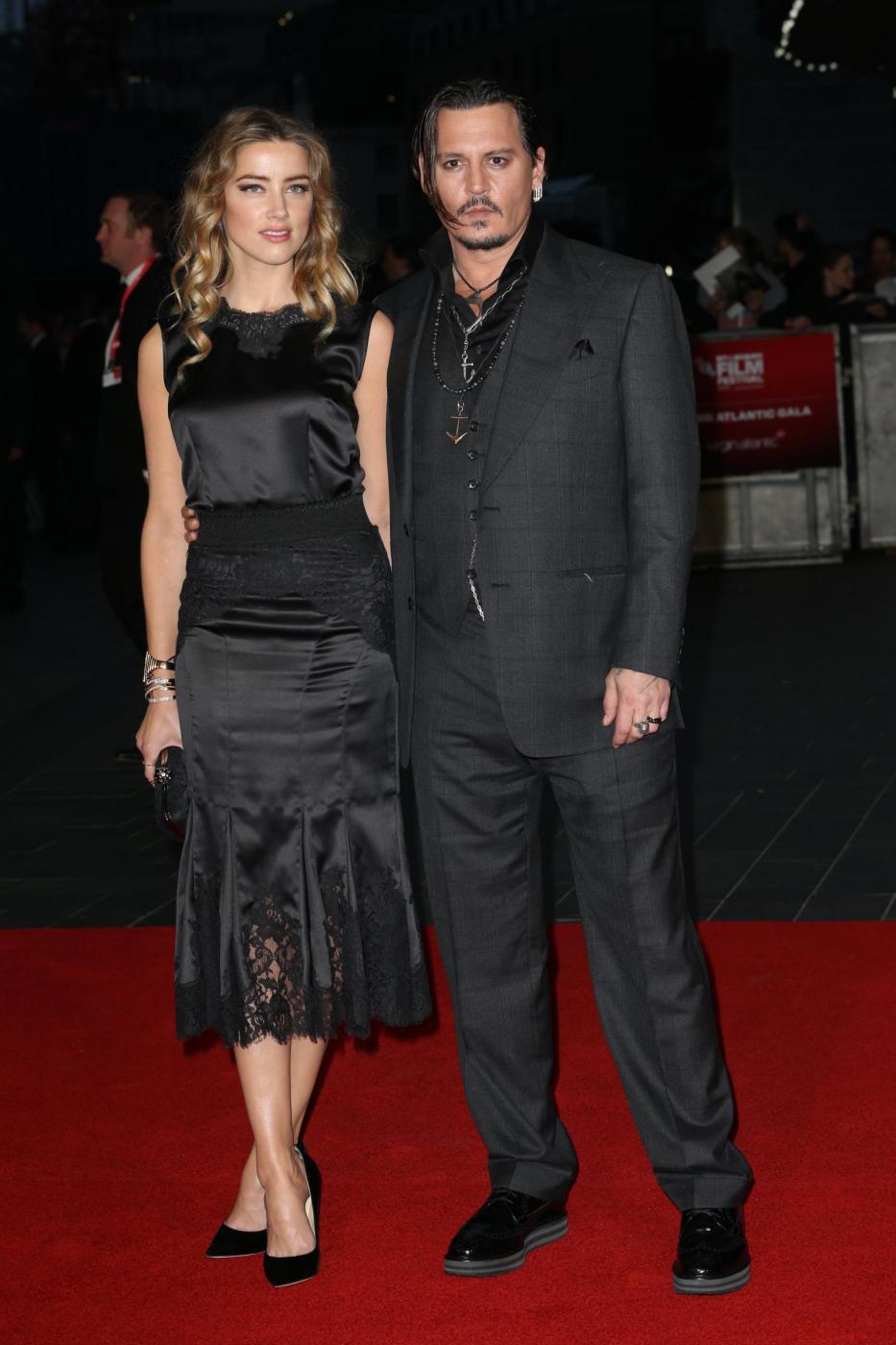Image licensed to i-Images Picture Agency. 11/10/2015. London, United Kingdom. Johnny Depp and wife Amber Heard arriving at the Black Mass premiere on day five of the London Film Festival. Picture by Stephen Lock / i-Images