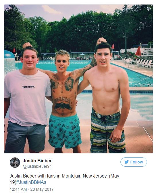 NEW YORK – Justi Bieber con addominali scolpiti: così siamo abituati a vedere il cantante di “Sorry” nei numerosi scatti che circolano sui social. Eppure, quando sono i fan a postare foto scattate insieme all’artista, l’effetto “adone” non sembra lo stesso. Basta dare un’occhiata a un’immagine diffusa da una pagina fan Twitter lo scorso 20 maggio. Justin si trova in piscina a Montclair, una città degli Stati Uniti d’America, nella contea di Essex, nello Stato del New Jersey. Si trova insieme a due fan. Appare piuttosto magro e la “tartarga” non è proprio come appare nelle foto postate dal cantante o in quelle pubblicitarie. A questo punto sembrerebbe evidente che Justin abbia il vizio di modificare le foto che lo vedono protagonista. Un gesto non necessario per i suoi fan, che lo amano e apprezzano al di là della sua forma fisica perfetta. Anche la sua storica ex, Selena Gomez, è stata bacchettata dai suoi follower per aver postate qualche foto i cui non appariva proprio al naturale.