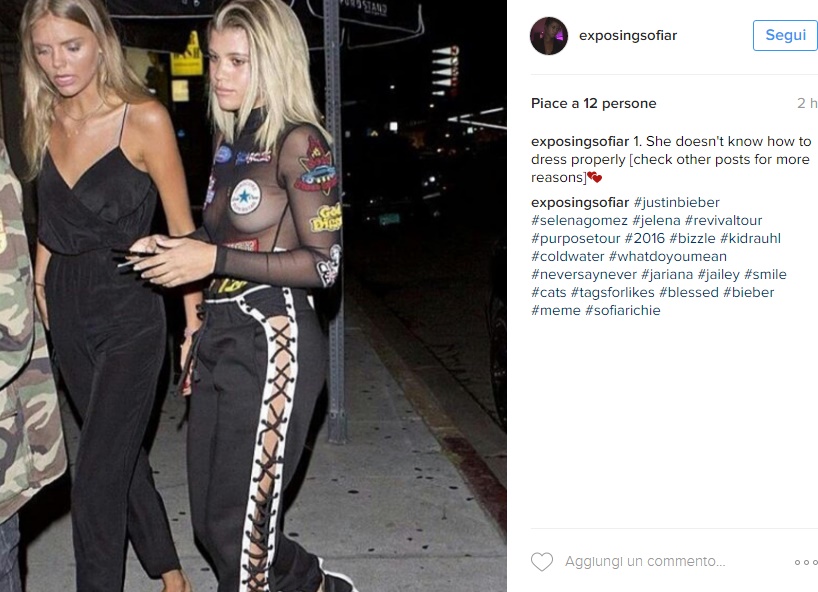 L’ondata di notorietà che l’ha investita durante la sua relazione con il cantante canadese deve esserle piaciuta parecchio e così sta facendo di tutto per attirare l’attenzione dei fotografi, anche uscendo con Bronte Blampient. Inizialmente le due erano molto amiche, poi sono diventate nemiche quando (prima Bronte e poi Sofia) hanno avuto entrambe una relazione con Justin. Ora, sono tornate a farsi vedere insieme.
