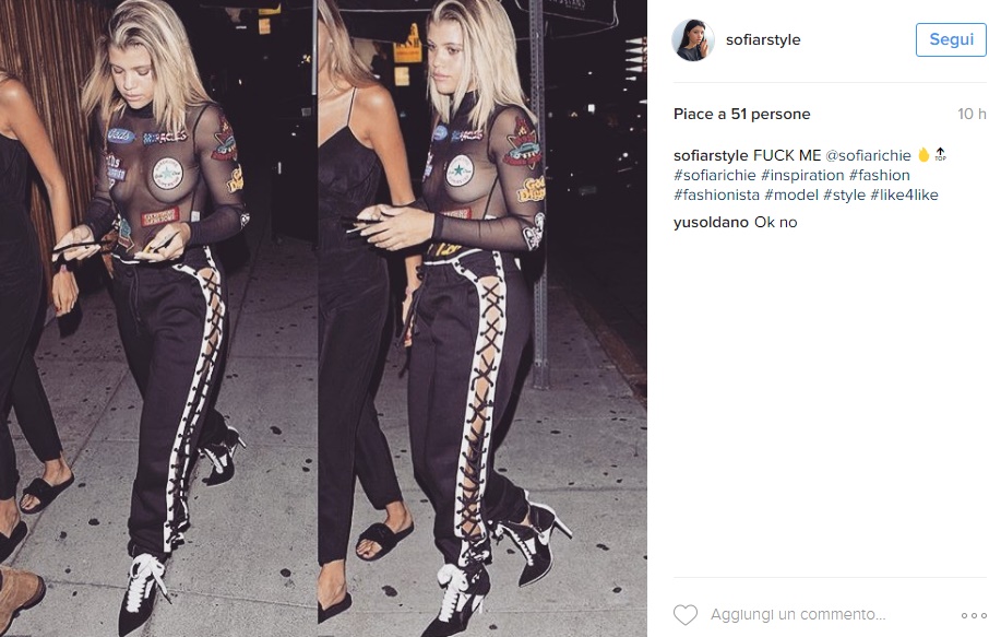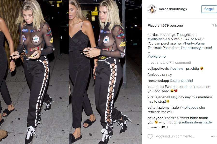 LOS ANGELES – Justin Bieber, ex Sofia Richie: che smacco, ecco con chi esce FOTO. Sarà che accanto a Justin Bieber era ormai abituata a far parlare di sé, sarà che ha capito che per catalizzare l’attenzione della stampa ha bisogno di azioni forti… ecco che Sofia Richie non perde occasione per attirare l’interesse dei fotografi e lo fa con 2 validi motivi: innanzitutto perché si fa pizzicare in quel di Hollywood niente meno che con Bronte Blampient, con cui Justin ha avuto una storia appena prima di Sofia. In secondo luogo, Sofia osa un look a dir poco esagerato che ha letteralmente fatto impazzire i fan: t-shirt completamente trasparente e senza reggiseno, le forme di Sofia sono nascoste solo da adesivi sapientemente applicati sulla maglia. Pantaloni della tuta aperti di lato e tenuti solo da due lacci e scarpe con tacco completavano il look a dir poco eccentrico. Che dire, non tutti i fan non hanno apprezzato questa svolta estrema di Sofia che invece fino a qualche tempo fa (sicuramente fino alla sua relazione con Justin Bieber) preferiva conservare un profilo più basso.