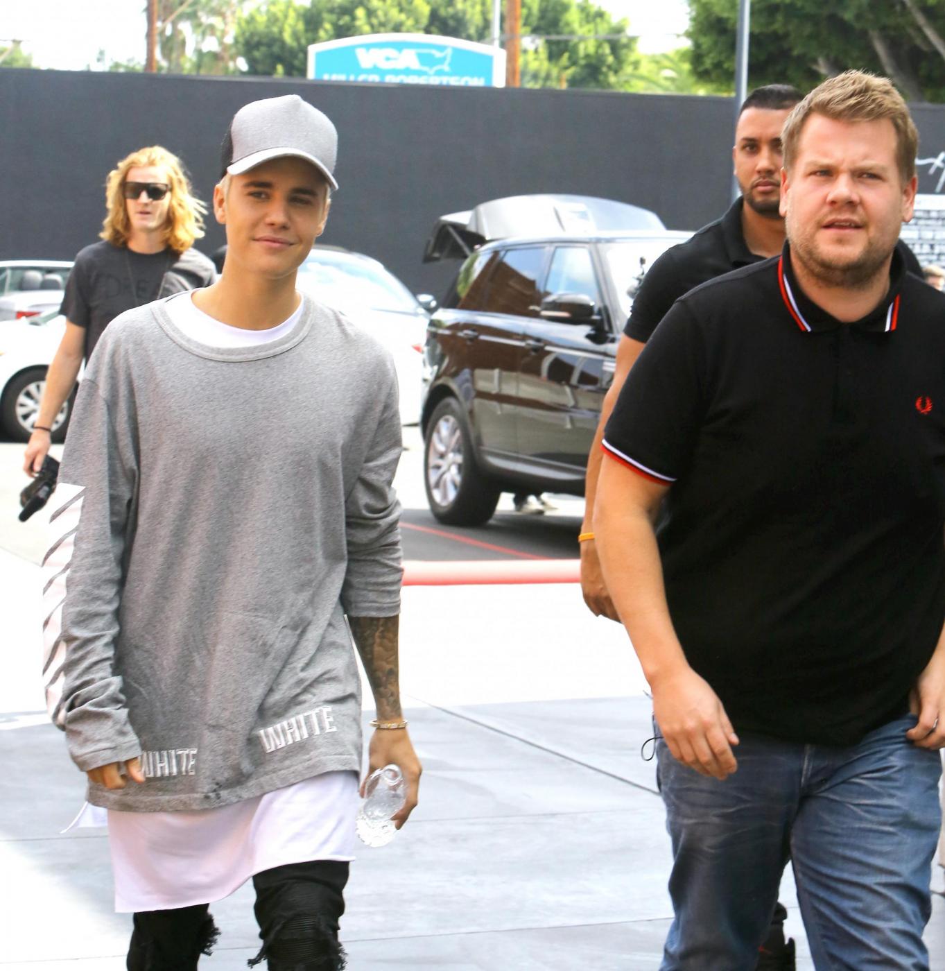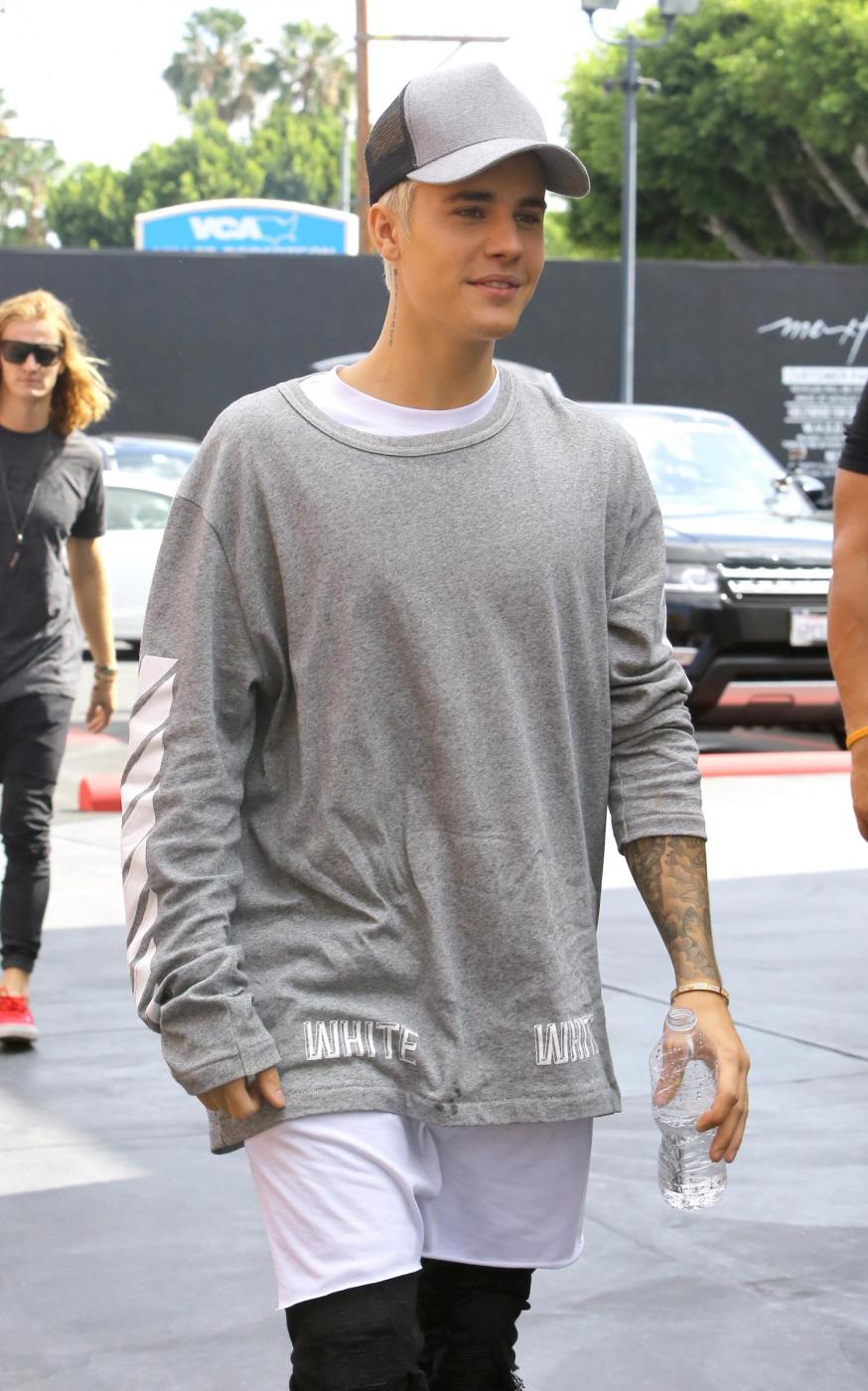 <H2>Please contact X17 before any use of these exclusive photos - x17@x17agency.com</H2>Justin Bieber was spotted while handling his business in Beverly Hills. The popstar was wearing white shorts with a black t-shirt and matching hat. The rapper's latest appearance was doing carpool karaoke with Late Late show host James Corden. Thursday, May 21, 2015 X17online.com Lapresse Only italyJustin Bieber con bermuda bianchi e cappelo e t-shirt neri a Beverly Hills