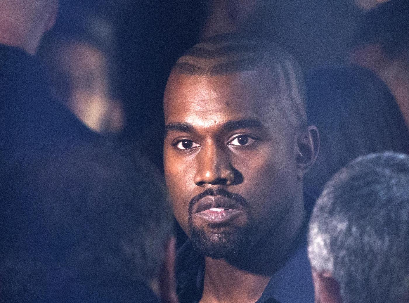 Kanye West arrives at the presentation of Lanvin Spring/Summer 2015 ready-to-wear fashion collection, presented in Paris, France, Thursday, Sept. 25, 2014. (AP Photo/Jacques Brinon)
