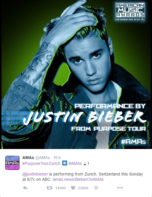 LOS ANGELES – Justin Bieber teme Selena Gomez? È ufficiale: sarà… Justin Bieber ci sarà, ma non come ce lo saremmo aspettato: il cantante canadese apparirà agli American Music Awards 2016 ma… non fisicamente. Secondo quanto riporta MTV, infatti, Justin parteciperà agli AMA direttamente da Zurigo, attraverso uno schermo, e omaggerà così da lontano i telespettatori del programma con una esibizione dal suo “Purpose World Tour“. La notizia, ovviamente, ha subito mandato in visibilio i fan del cantante ma i gossip non sono mancati: come mai Justin Bieber non si presenta di persona? Teme forse di incontrare Selena Gomez?
