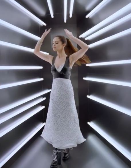 Selena Gomez, abito lungo grigio al Vanity Fair Oscar Party FOTO