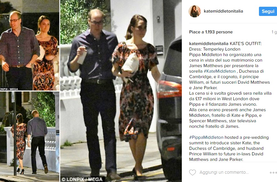 Secondo alcuni gossip la cena, durata circa 3 ore, sarebbe stata organizzata per definire gli ultimi dettagli in vista del matrimonio tra Pippa e James, che avrà luogo il prossimo 20 maggio. Un passante che ha visto la coppia reale all’uscita della casa di Pippa avrebbe detto al Mirror: