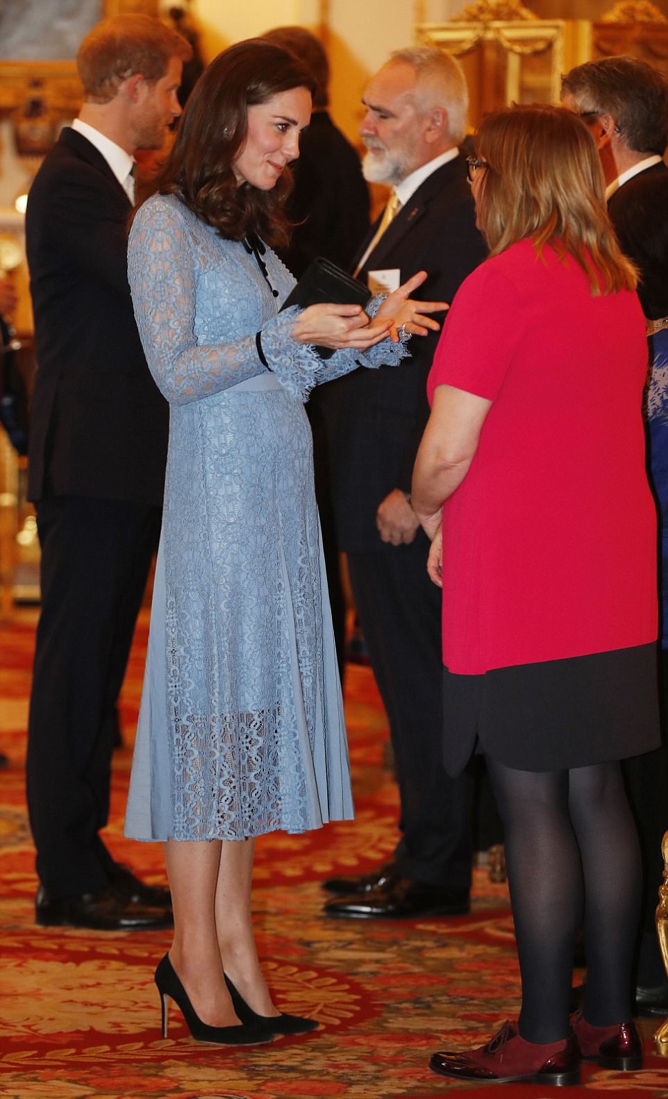 A un mese dalla notizia ufficiale della terza gravidanza, Kate Middleton è tornata a farsi vedere in pubblico in occasione della celebrazione della Giornata sulla salute mentale, nelle sale di Buckingham Palace. Per l’occasione, la Duchessa ha scelto un bellissimo abito in pizzo firmato Temperley London, uno dei suoi marchi preferiti. Si tratta di un vestito in pizzo, lungo fin sotto al ginocchio e con bottoncini sullo scollo. A far accendere immediatamente il gossip, però, è stato il colore dell’abito: celeste. I media inglesi non hanno dubbi: la scelta del colore non è casuale e nasconde la rivelazione del sesso del nascituro. Dopotutto, la stessa regina Elisabetta qualche settimana fa aveva alimentato il gossip, presentandosi ad un evento vestita di azzurro, ed era lo stesso giorno in cui è stata annunciata la notizia della terza gravidanza di Kate. Ora, anche la Duchessa per la sua prima uscita pubblica ha scelto di vestirsi di celeste. Se 2 + 2 fa quattro, i bookmaker non hanno dubbi: il terzo figlio di Kate e William sarà maschio!