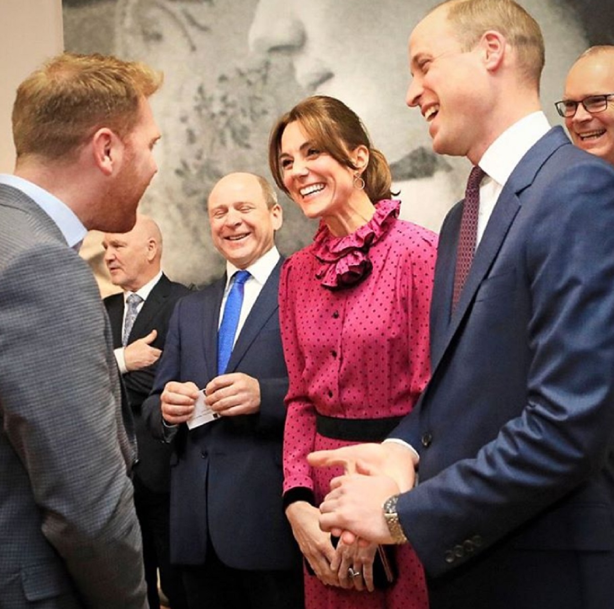 Questo look color pop arriva dopo un’altro abito super chic che Kate ha scelto in occasione dell’uscita della sera prima, per un ricevimento al Gravity Bar del Guinness Storehouse. Kate ha abbinato le sue décolleté nere con un abito da cocktail in lamé color smeraldo e con bordo arricciato, proveniente dalla collezione dalla nuova labels The Vampire’s Wife.