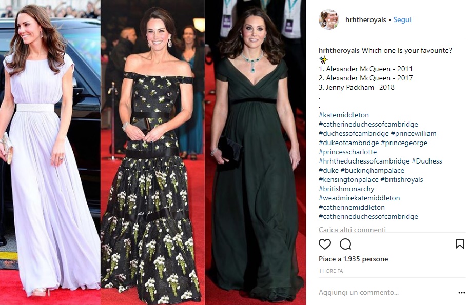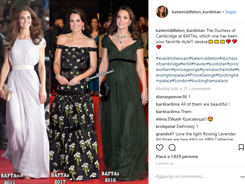 Non è la prima volta che Kate decide di apparire sul red carpet dei Bafta, il premo cinematografico più importante del Regno Unito. La Duchessa è apparsa sul tappeto rosso dell’evento già altre due volte, nel 2011, pochi mesi dopo il fidanzamento ufficiale con William (e pochi mesi prima del matrimonio), e nel 2017. Analizzando i 3 look è possibile notare come Kate sia molto cambiata nel tempo.