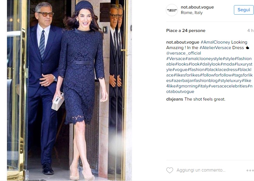 LONDRA – Kate Middleton, Amal Alamuddin le copia l’abito in pizzo FOTO. Che Kate Middleton sia una vera e propria regina di stile e icona di moda è cosa nota. Ma quando un’altra fashion icon del calibro di Amal Alamuddin, moglie di George Clooney nonché avvocato di successo, la cosa comincia a farsi seria. In occasione dell’importante incontro a Roma con il Papa durante il meeting “Un muro o un ponte” organizzato dall’Università Lumsa, Amal Clooney ha infatti indossato un tubino in pizzo blu notte firmato Versace. Un abitino davvero delizioso che la moglie di Clooney ha arricchito con un cappellino in tinta e decollétè e clutch neutre. Un tubino, però, molto simile a quello indossato già in diverse occasioni (e tinte) da Kate Middleton, firmato però Dolce&Gabbana.