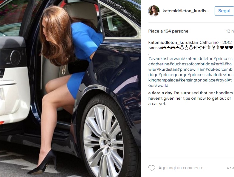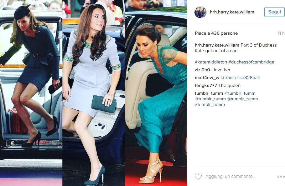 Kate, però, è fortunata perché a differenza di quasi tutte noi comuni mortali, ogni volta che scende dalla macchina ha uno staff di autisti pronti ad aprire e tenere salda la portiera dell’autovettura, ricordandoci che più questa è aperta e meglio è, così da agevolare la discesa.