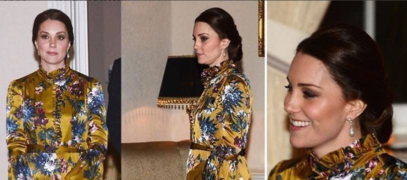 STOCCOLMA – Kate Middleton, bellissima in abito lungo FOTO. Meravigliosa Kate. Era un po’ di tempo che non indossava abiti lunghi ma in occasione del suo viaggio istituzionale in Svezia, alla cena con il primo ministro svedese Stefan Löfven e sua moglie, Ulla Löfven, e i reali di Svezia, la Duchessa ha sfoggiato un bellissimo abito lungo firmato Erdem. Si tratta del vestito “Stephanie Gown” dal valore di 1945 sterline (ora a saldo sul sito a 1360 euro) color giallo senape, in seta e stampe a fiori, dalla linea vintage. La Duchessa ha abbinato il bellissimo abito ad orecchini di perle Diana Colinwood, clutch bordeaux e scarpe con tacco in suade Gianvito Rossi.
