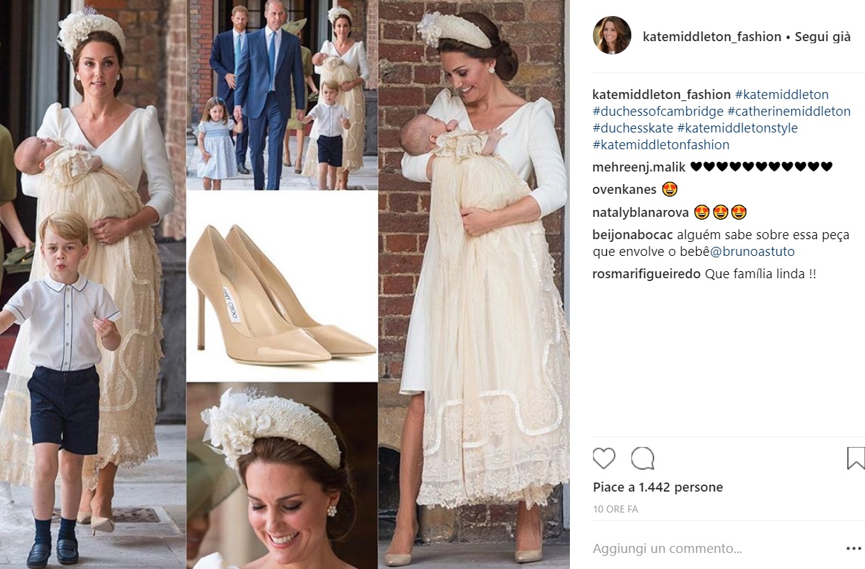 Per l’importante occasione Kate ha scelto un meraviglioso abito bianco sporco firmato, ovviamente, Alexander McQueen, casa di moda che ormai sembra scegliere per tutte le occasioni più importanti. Capellino a fascia firmato Jane Taylor e scarpe con tacco Jimmy Choo completavano la mise. Kate, come sempre, è apparsa davvero regale.